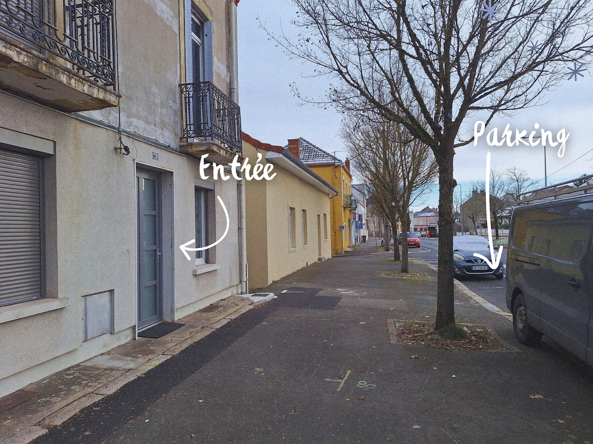 Studio 25m2 au 2ème avec ascenseur dans une copro. sécurisée, proche centre ville et école sup., parking au pied de l’immeuble ou se garer dans un parking gratuit à 400m. - Cuisine équipée ( micro onde, frigo, lave-l., nespresso, bouilloire, plaque de cuisson, couverts…) - Salle de B avec douche à l’italienne et toilettes ( sèche-cheveux, serviettes de bain...) - Petit salon TV, couchage confortable (160x200) ( possibilité prêt lit bébé parapluie). - Bureau avec rangement. - Dressing à l’entrée.