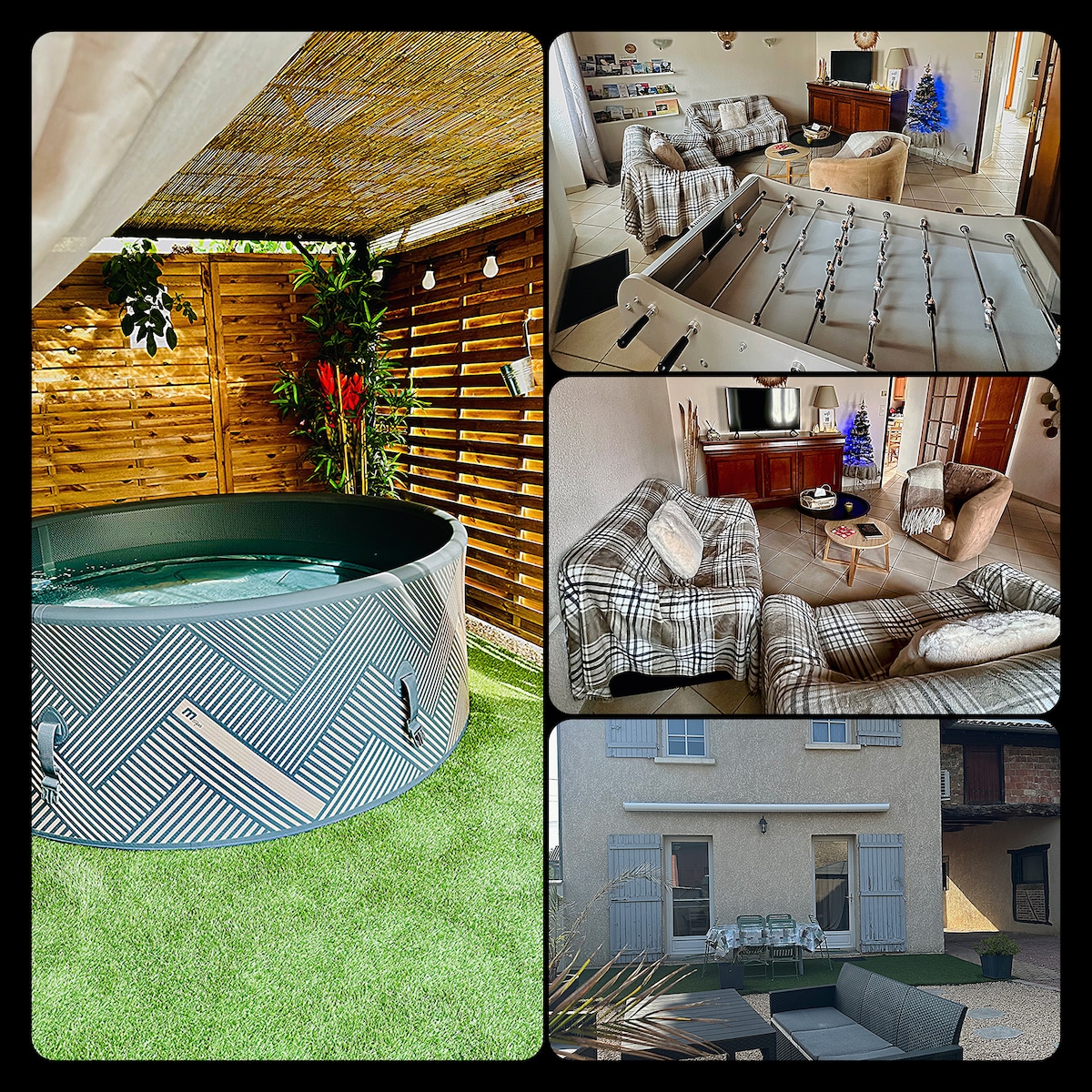 Villa au calme à la campagne Venez passer un moment de calme et de détente. La villa vous est entièrement réservée. Au coeur de la campagne à 5min de vonnas (village gourmand :Georges blanc) A 1km le petit mezeriat restaurant gastro (guide Michelin) Pizzeria et restaurant asiatique et boulangerie.... Vous pourrez vous détendre dans un sauna /spa 5places chauffé jusqu'à 38c toute l'année En cas de pluie (abri)
