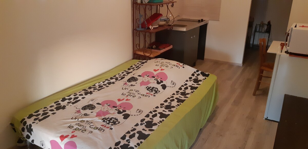 Studio très bien équipé, lumineux et cosy. Parfaitement situé : -Basilique : 4 mn en voiture -Tout commerce : 2 mn en voiture. -Hôpital : 5 mn à pied -Accès voie verte : 5 mn à pied Merci de préciser si vous êtes plus de 2 voyageurs , 10 € seront alors demandé par nuit et par voyageur supplémentaire ( enfants compris dormant dans un lit parapluie personnel ) Je serai ravie de vous guider pour découvrir ma belle région (restaurants, activités, monuments, ballades …) À bientôt