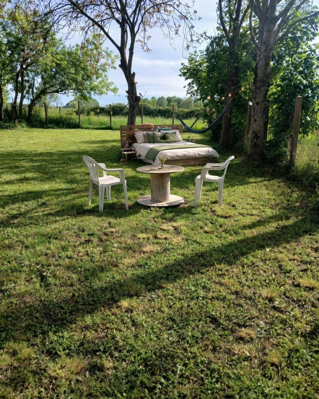 Sur un terrain sans vis à vis, location de tente pour amis motards, cyclistes ou marcheurs. Idéalement placé sur la voie bleue, une halte pour le repos du guerrier avec douche solaire et toilettes sèches à disposition ! transats, table, chaises, hamacs vous sont gracieusement prêtés. Un barbecue est disponible (apport de votre charbon de bois requis ou supplément..) Venez flemmarder et vous ressourcer avant de reprendre la route 🙂
