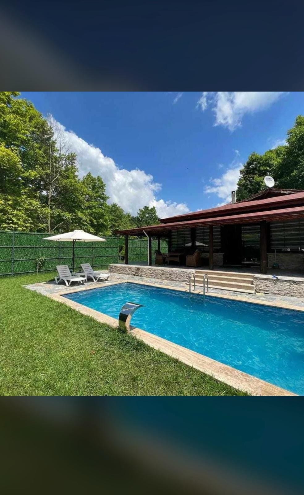 Bali Sapanca Bungalov 👨👩👧👧6 Kişi Kapasiteli 🏡Müstakil Geniş Bahçe 🌊28 m2Özel ısıtmalı Havuz 🛝Mini su kaydırağı 👼 Trambolin ve Salıncak 👀%100 Muhafazakar korunaklı 🛏2 Adet Yatak Odası 🔥 Ateş Çukuru 🍖Taş Barbekü 👩🍳Özel Mutfak 🍳Kahvaltı Dahildir 🥩Restaurant Hizmeti 👮🏻♂️7/24 Güvenlik 🕤Giriş Saati: 14:00 🕤Çıkış Saati: 11:00 Daha fazla bilgi için bize ulaşabilirsiniz.