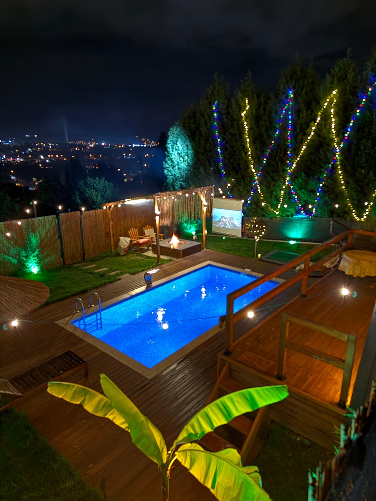 Geniş ve korunaklı bahçe, büyük havuz 6x3 ısıtmalı. (34-38 derecelerde) 2+1 alttan ısıtmalı bungalov. Projeksiyon var aktif ve akıllı. Ateş çukuru ve ocak başı gibi bir üstü kapalı konsept yaptık. Kartepecloud mekanın adı. Rekabetçi fiyatlar için 💬💬