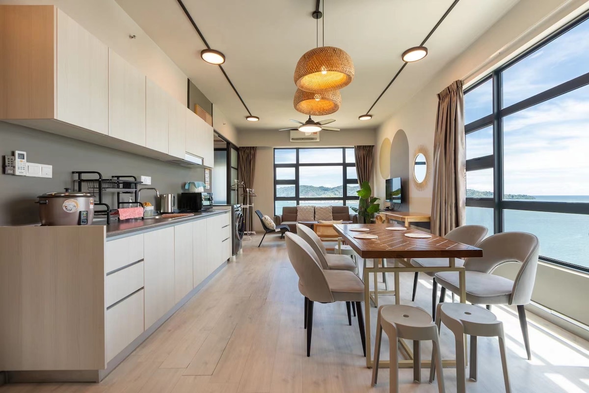 亚庇Jesselton Quay心愿民宿/角头单位/2房2卫/全海景夕阳/海岛码头/洗衣烘干一体机
