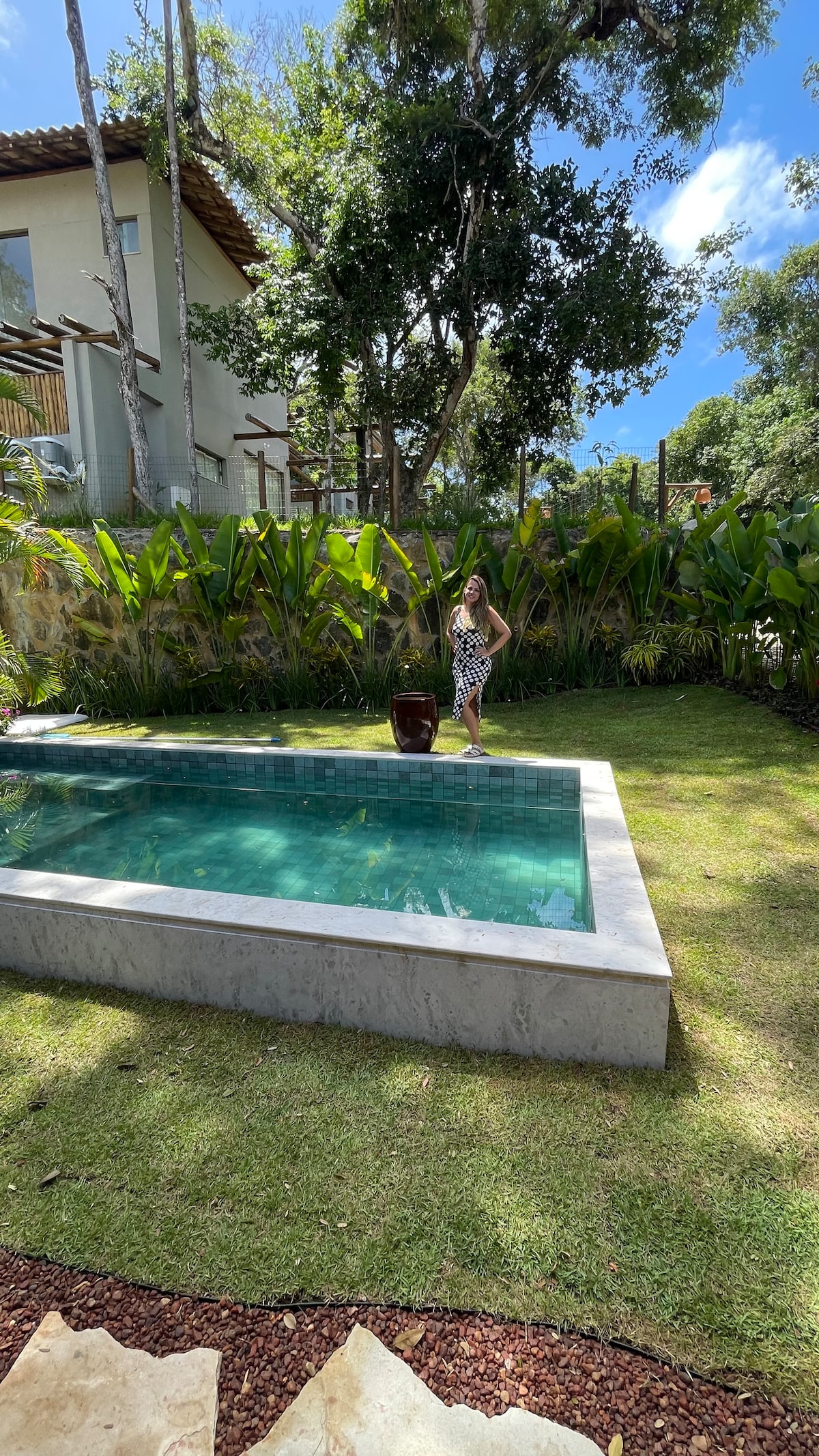 A casa está localizada no condomínio piscinas naturais, Jacarandas, n.318. Condomínio beira mar, com total segurança e infra estrutura. Com uma arquitetura diferenciada, a casa é totalmente integrada, inclusive com a natureza. O condomínio tem clube, academia, quadra de tênis, campo de futebol e parquinho infantil. A casa está há 150 mts da praia. Para maior comodidade, o condomínio disponibiliza uma van executiva que leva e trás até a vila, nos finais de semana até a meia noite. Esperamos vocês