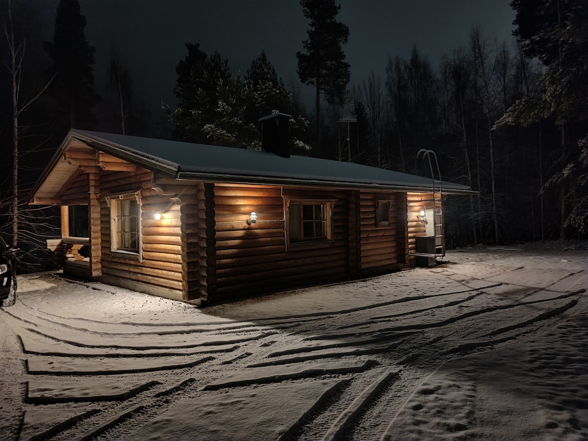 A new, well-equipped log cabin built 2018 with a good access to the main roads and nearby cities. The cabin is located on a hill with a great view to a big lake. The cabin is surrounded by great berry forests, hiking trails and a lake rich in fish. In the cabin you have a wood burning sauna, a fireplace, a grill shelter, a hot tub and a boat. Winter time you can do cross-country skiing, downhill skiing, snowboarding, ice fishing and snowshoe trekking.The nearest ski center is in Sappee (30km)