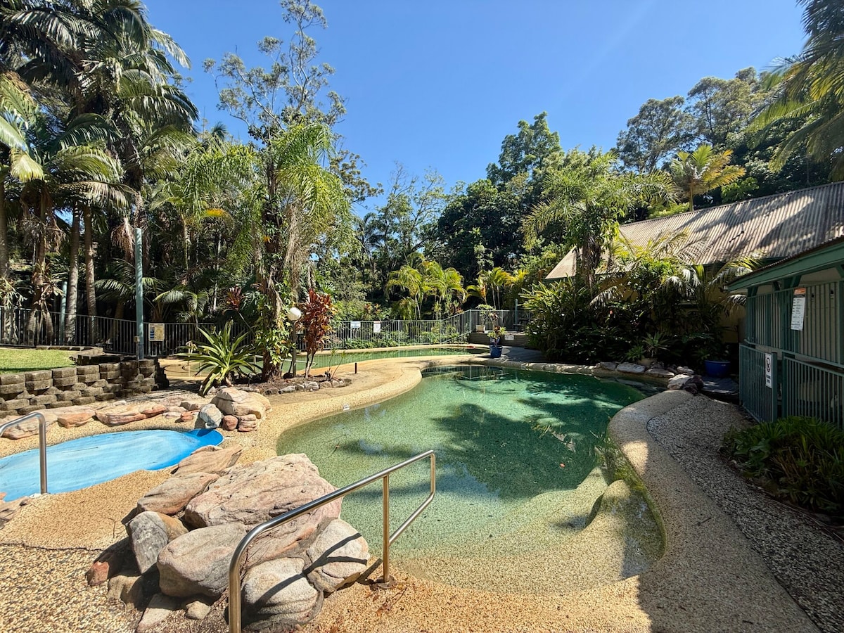 PACIFIC BAY RESORT - Studio Unit is privately owned and is a 1 minute to the beach. Owner Christine maintains the apartment herself, ensuring that you have a pleasant and clean place to stay with lagoon views. This fully air conditioned apartment has a ceiling fan . Complimentary WiFi, Free Parking, Mini Kitchen with Tea/Coffee making facilities small bar fridge and a microwave oven. Guests enjoy 2 Outdoor Swimming Pools, Tennis Courts, Onsite Restaurant and Golf course