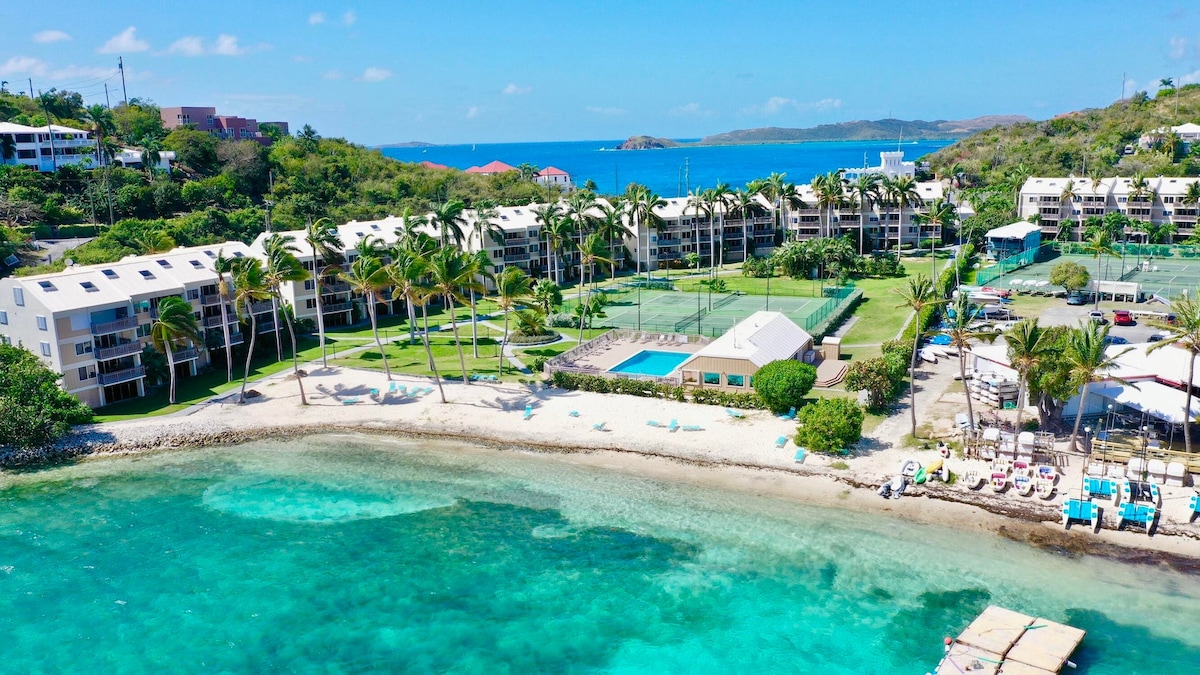 SUNSHINE in Paradise AWAIT YOU! Beach front Resort, truly a perfect tropical dream-come-true! 2 POOLS! Come enjoy a margarita and kick off your flip-flops, sip a tasty drink and let your gaze rest upon an expanse of fine white sand, crystal-clear waters, and St. John Island in the distance. Restaurant on property! Coki Beach is within walking distance, and very close to Red Hook for shopping and dining experiences! *PLEASE read - GUEST ACCESS SECTION- for important information!*