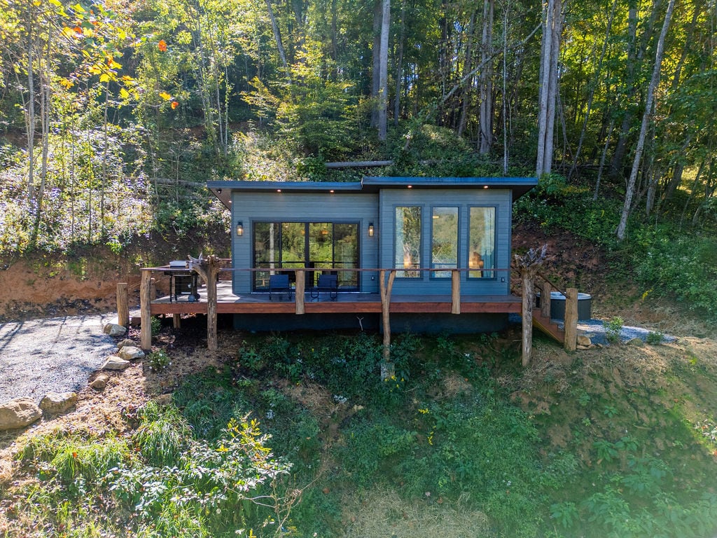 Embark on a relaxing trip to the North Carolina Mountains and rest in The Nest. This cozy tiny home is the perfect place to enjoy nature. Savor the magnificent scenic views (both of the valley below and Balsams in the distance) with a fresh cup of coffee or soak in the hot tub after hiking the parkway. This space has everything you need for a weekend away. The Nest is newly built and embodies a light, airy space with rustic and organic touches of live edge and native wood species. Come visit us!