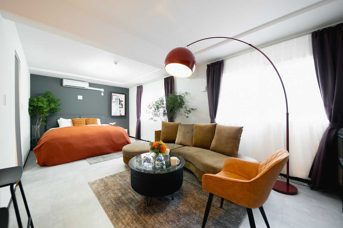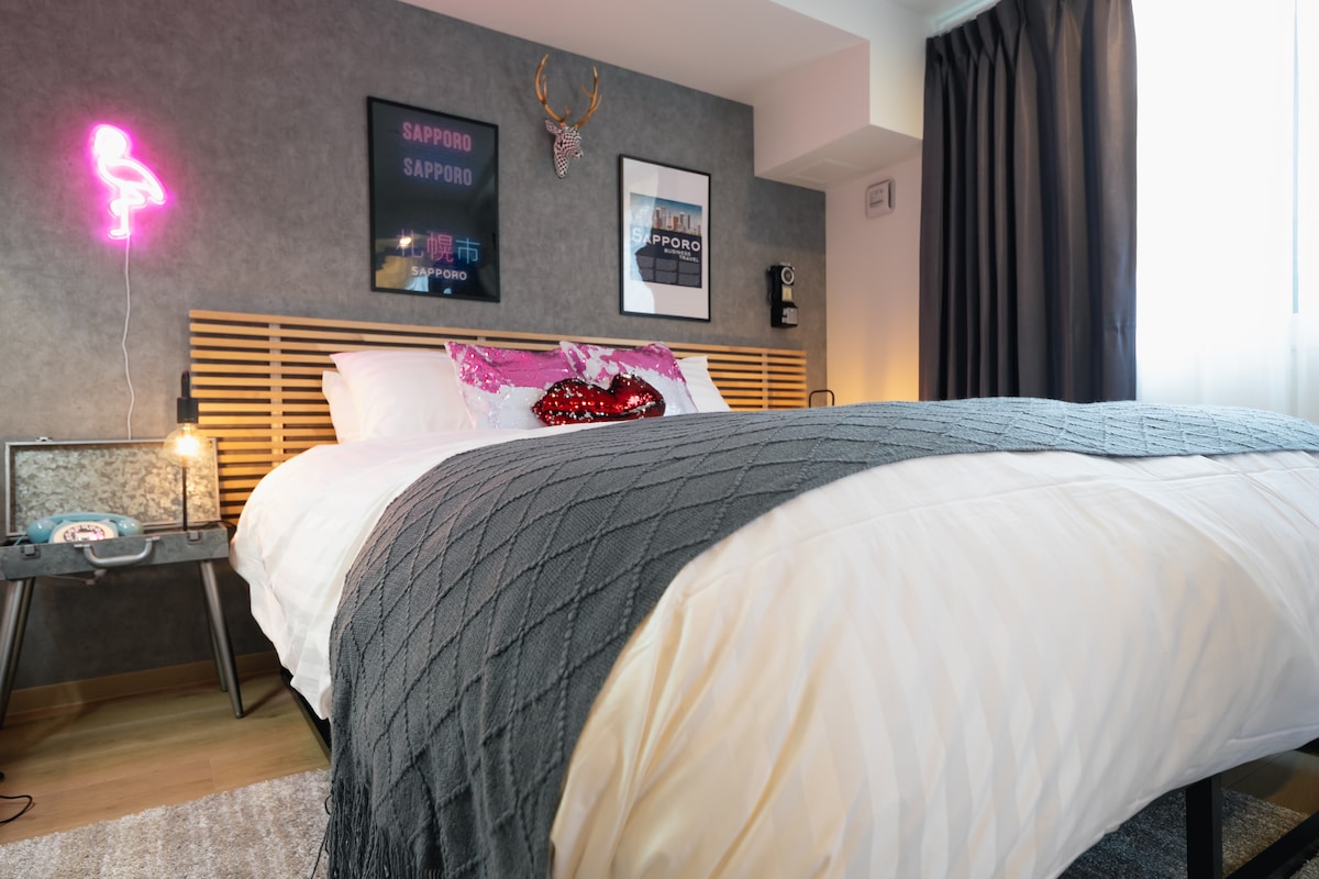 Luxury Apartment in Sapporo City Center, Susukino Area the vibrant district, offers a convenience and comfort stayed Nijo Market: 500m Bus Center-mae Subway Station: 600m Susukino Subway Station: 800m Tanukikoji Shopping street: 650m Odori Park: 1.1km This is designed for particularly for those working remotely Work Support: Apple Studio Display, working desk and ergonomic chair, printer and free WiFi Bedroom: a queen-sized bed. Living space, kitchen and bathroom & toilet