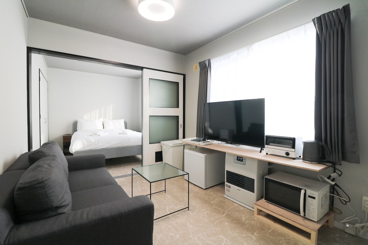 手稲スキー場まで車で20分!駐車場無料・6名OK|駅から30秒!広々空間/家具家電&キッチン完備|