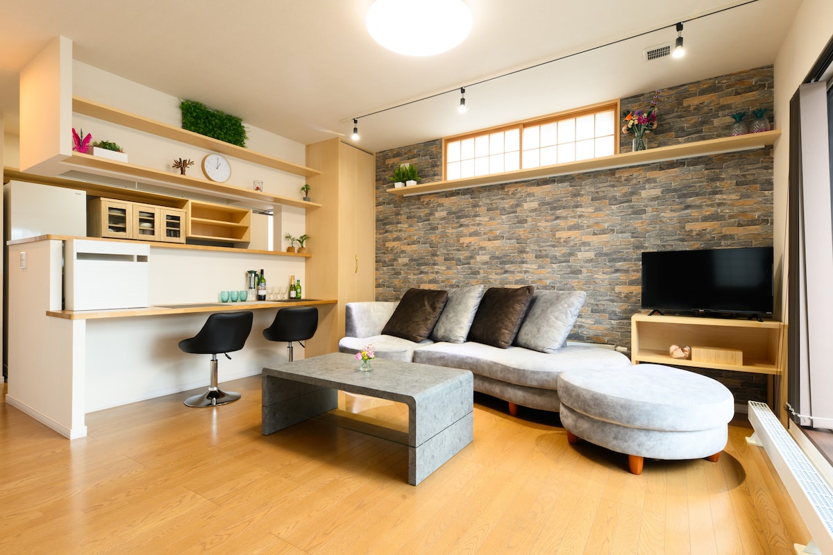 The comfortable living room is on the 2nd floor with the large bedroom (Japanese-style room) on the 3rd floor. It is a luxurious structure that can be enjoyed by families with children or with friends. Hanke is fully furnished with a complete set of home appliances, so you can stay with us in variety of situations from one night stay to one month long stay.