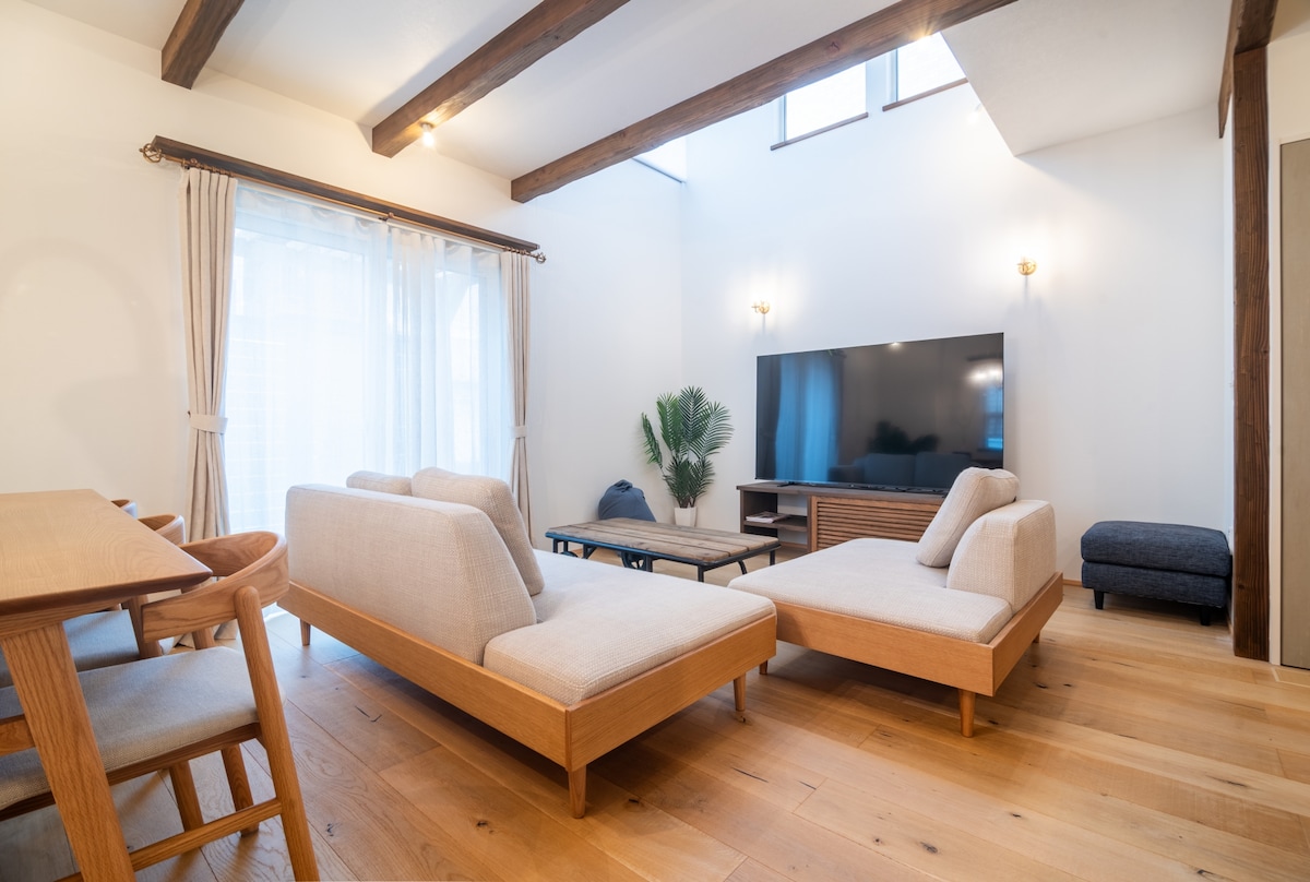 This private luxury villa in Zenibako is surrounded by peaceful nature and offers a relaxing escape from daily life. Designed in collaboration with an interior design firm, the space features elegant, high-quality furniture and décor. It sleeps up to 8 guests—perfect for families, friends, remote work, or special occasions. In summer, enjoy the nearby beach and fruit farms; in winter, it’s an ideal base for skiing. Unwind in comfort and style in this serene, beautifully designed hideaway.