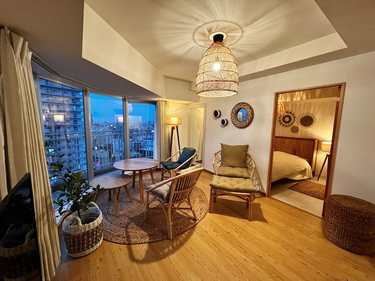 29楼,配有吊床和唱片机,景观最佳,步行2分钟到地铁站,有很多便利店,最多可住6人