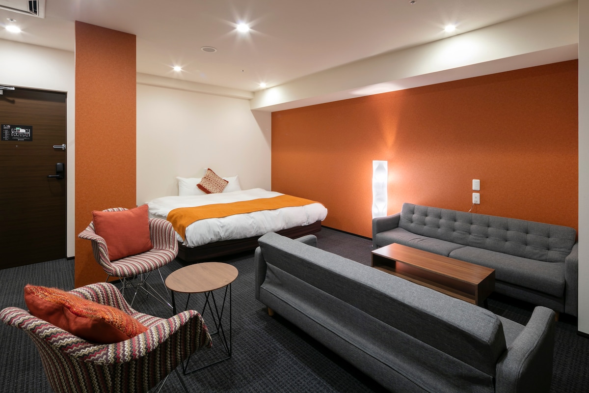 Welcome to【The Knot Sapporo】, a modern hotel with convenient access from the station. All of the rooms are designed to give you a sense of comfort and warmth based on the theme of Modern & Nature, with all of the rooms featuring THE KNOT's original lighting, Hokkaido materials such as Donan cedar walls and Sapporo soft stone night tables, and carefully selected amenities. We have designed the facility so that guests can spend their time in a relaxing atmosphere.