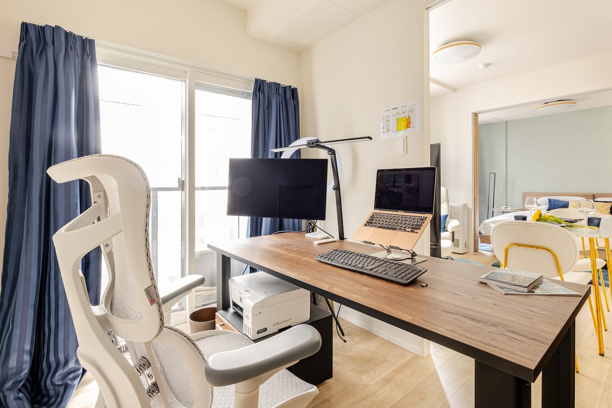 Sapporo Digital Nomad Base: Work Smarter, Play Harder Forget the cubicle! Stunning themed is built for the modern remote professional. Everything you need for peak productivity is here. The Ultimate Workspace: Featuring an Apple Studio Display setup, ergonomic chair, spacious desk, Wi-Fi, printer and quality speakers. Rest & Recharge: with the luxurious King Bed. Unwind & Play: Enjoy the PS5 console, Smart TV, and sound system. BONUS: Enjoy access to pool, gym, sauna, and onsen, all nearby!