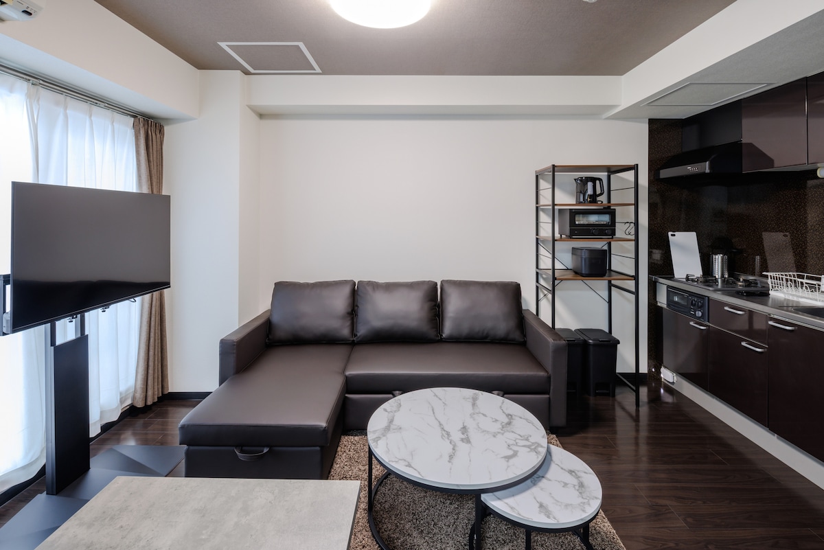 Newly built condominium in the heart of Sapporo! 1 min step away from Tanuki koji arcade. Luxurious new apartment built in 2023! Features 1. Spacious 44sqm room 2. Can accommodate up to 6 people 3. High security condo. 4. Superb Location location location!! The area is surrounded by the hottest shopping areas, fashionable boutiques, and delicious restaurants, and bars! Enjoy a memorable stay in a newly built luxurious space while experiencing all that Sapporo has to offer.