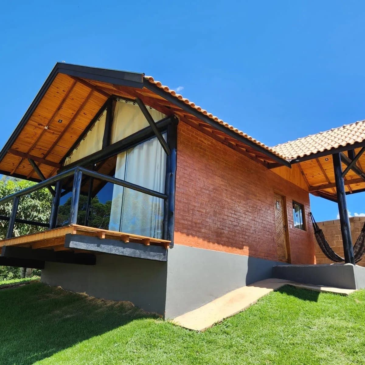 Descubra a magia da Serra da Mantiqueira nesta cabana projetada para que você possa contemplar o nascer do sol sem sair da cama. Venha relaxar em nosso spa aquecido, observar as estrelas na rede suspensa e balanço. A cabana possui um quarto integrado com uma aconchegante cama Queen. Na sala/cozinha, um futon super confortável acomoda mais dois hóspedes, tornando a experiência ideal para famílias. A propriedade também conta com trilhas e pequenas quedas d'água. Este sítio é um refúgio único.
