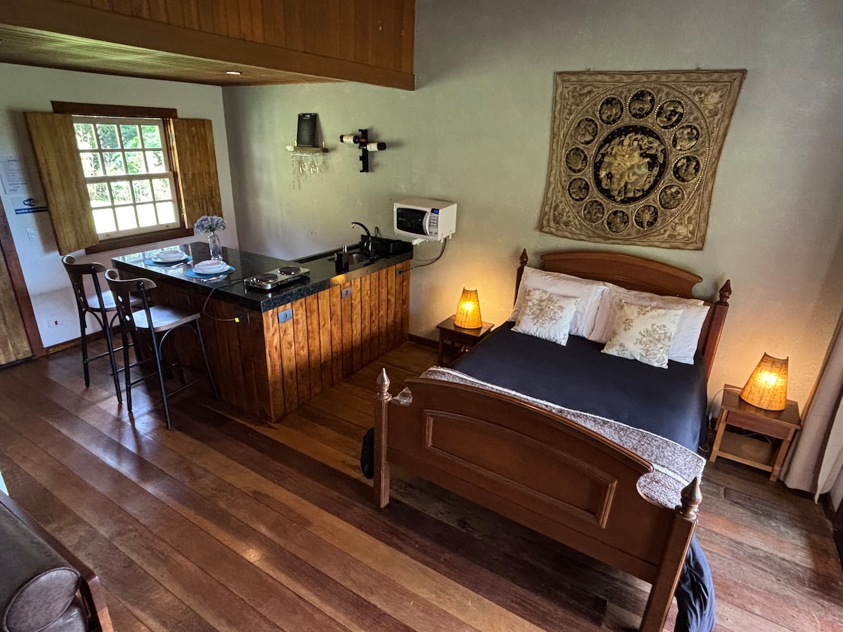 A Cabana Mantiká, cercada pela magia da Mantiqueira, é ideal para quem busca descansar, respirar fundo e deixar o tempo passar no seu ritmo. Comece o dia com nossa cesta de café da manhã, com delícias mineiras feitas com carinho. À tarde, relaxe na banheira com vista para o lago e as montanhas. Quando a noite cair, acenda a lareira, admire o céu estrelado e aproveite o clima serrano ao lado de quem você ama. Passeios e experiências locais estão por perto para quem quiser explorar a região.