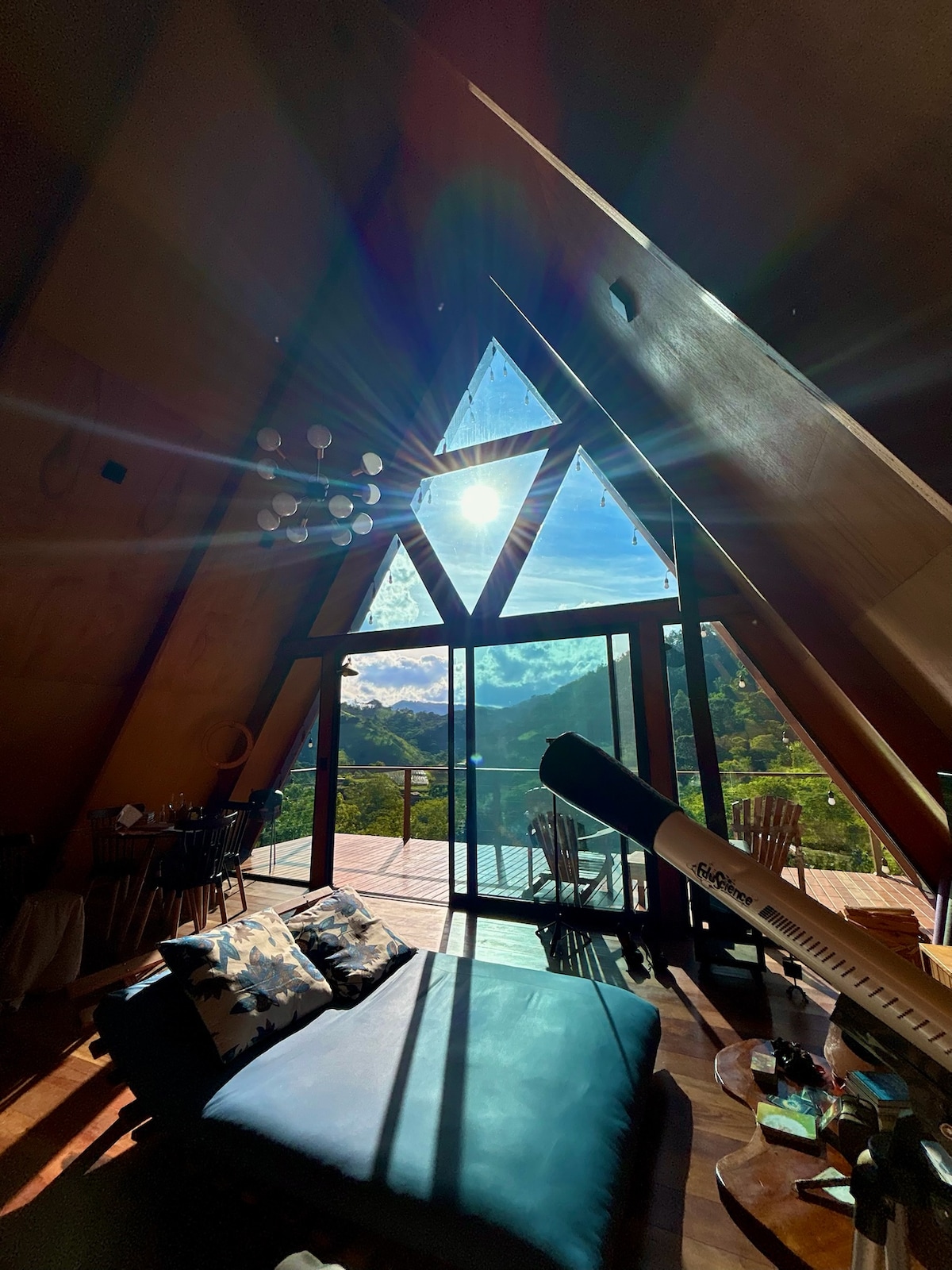 Experimente o luxo e a serenidade na nossa Cabana A-Frame (super espaçosa e bem construída) na Serra da Mantiqueira, a 1200m de altitude. Acorde com o canto dos pássaros e a névoa das montanhas. À noite, encante-se com estrelas no telescópio e vagalumes no ar. Este refúgio de 100m² oferece cama queen, colchão Emma Original e roupas de alto padrão hoteleiro. Relaxe junto à lareira e na hidromassagem da sala de banho, ou desfrute de marshmallows na fogueira com sua família. Viva a montanha!