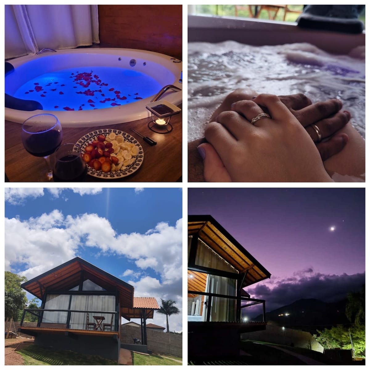 Chalé Neblina - somente CASAIS. Chalé Rústico 100% PRIVATIVO PARA OS HÓSPEDES com uma jacuzzi com vista espetacular da Serra da Mantiqueira o refúgio Chalé Neblina foi criado especialmente para casais que querem aproveitar um tempo a sós; estamos perto (15/20min) do Centro da cidade. Temos SmarTV, WIFI, Lareira, chuveiros quentíssimos, cozinha completa, varanda com jacuzzi e churrasqueira, com roupa de cama/banho, e roupão de banho. Tudo nas fotos 100% privado para os hóspedes!