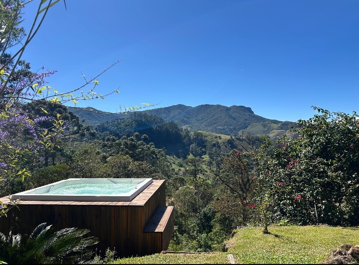 A Casa Nórdica na Montanha é o destino perfeito para casais, famílias ou amigos que buscam tranquilidade e exclusividade. Relaxe no ofurô aquecido com vista para as montanhas, aproveite dos momentos ao ar livre, na fogueira de chão, nas espreguiçadeiras, e de refeições especiais em nosso pergolado. A casa conta com 3 quartos confortáveis com ar-condicionado e roupa de cama completa. O deck é perfeito para admirar o pôr do sol. Experimente uma estadia inesquecível em meio à natureza!