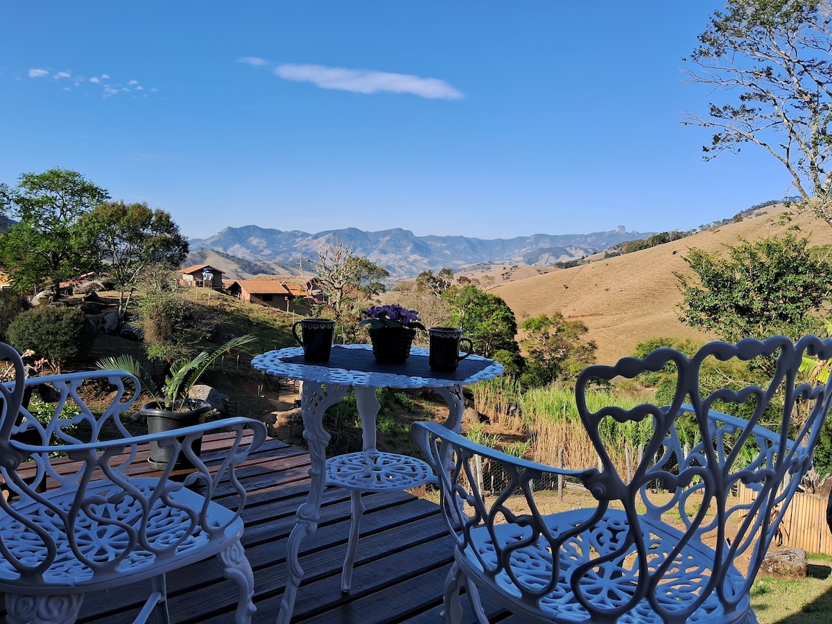 Pet Friendly 🐶🐱 Bem-vindo à nossa Cabana. Aqui a ideia é simples: desligar da cidade e se conectar com a Natureza. Acorde com super visual do Vale e Pedra do Baú. À noite, admire um céu tomado de estrelas. Lareira na sala para aquecer os dias de frio da Mantiqueira. Cozinha completa c/fogão tradicional e fogão a lenha para quem curte cozinhar no ritmo da Roça. Fogo de chão no jardim p/longas conversas sob as estrelas. Clima gostoso o ano todo..do sol da tarde ao friozinho da noite. Permita-se!