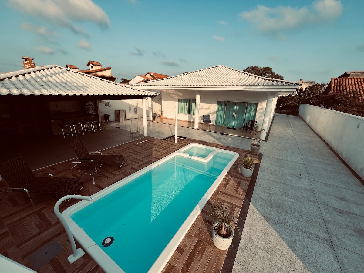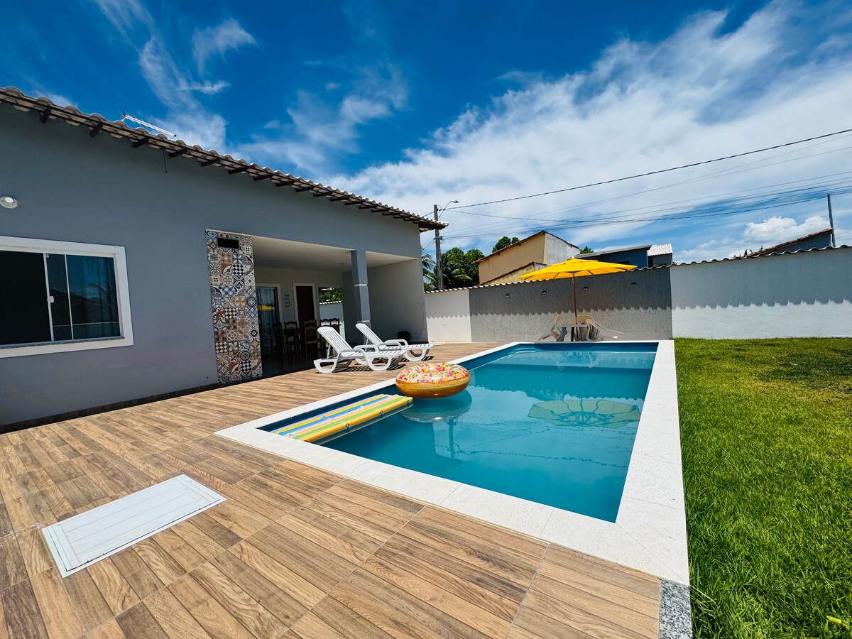 Casa em Itaúna 700m da Praia,带游泳池和空调