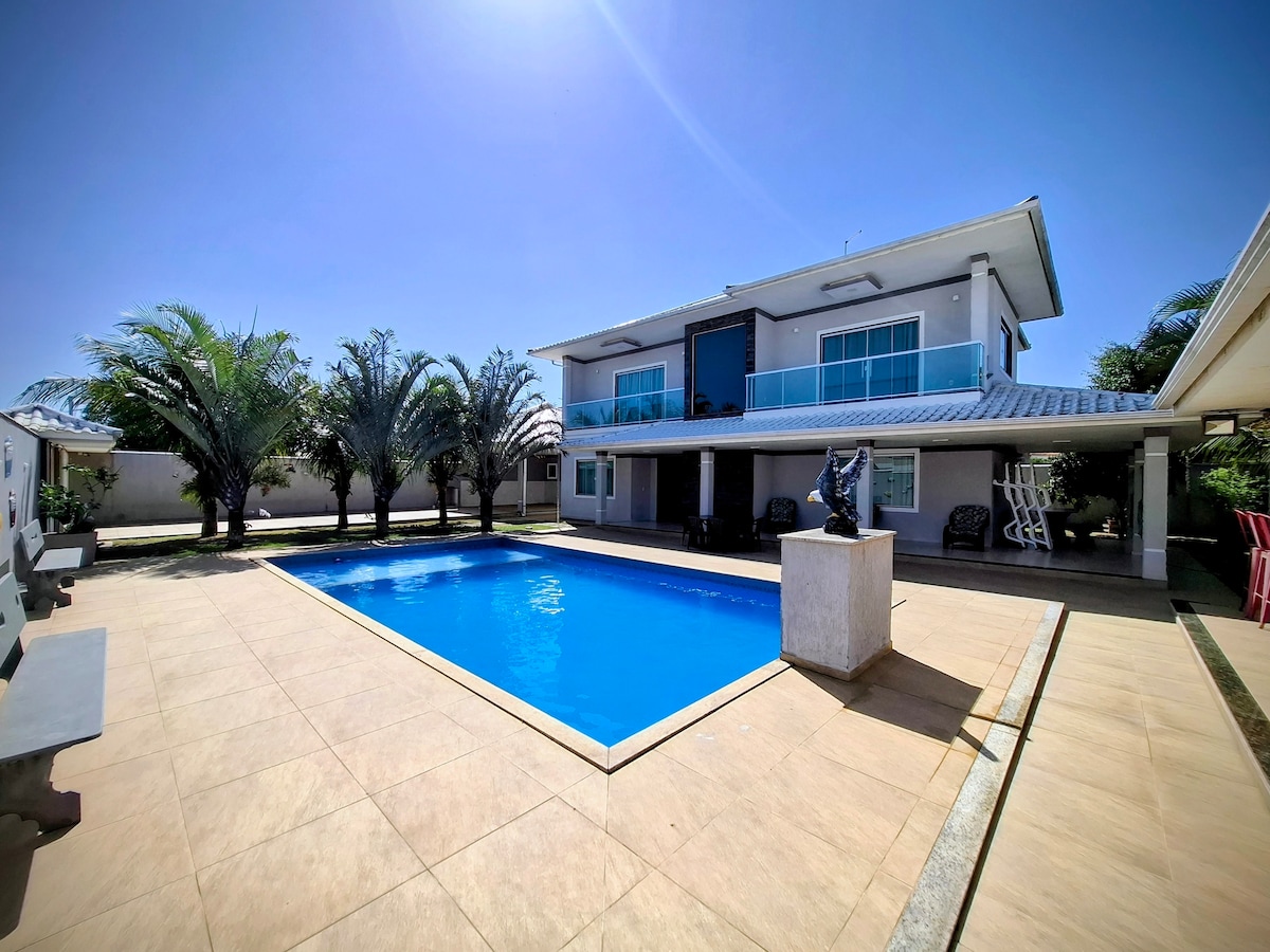 Mergulhe na magia da Lagoa de Saquarema! Casa exclusiva às margens da lagoa em Saquarema! Com 5 quartos (2 suítes), todos com ar-condicionado, piscina no jardim, varandão com mesa de jantar e sinuca, área gourmet completa com forno e fogão à lenha. Deck com quiosque e ofurô, caiaques e barquinho para curtir a lagoa. Quintal amplo com paisagismo, estacionamento para até 8 carros, Wi-Fi, portão eletrônico e total privacidade. O refúgio perfeito para famílias e grupos!
