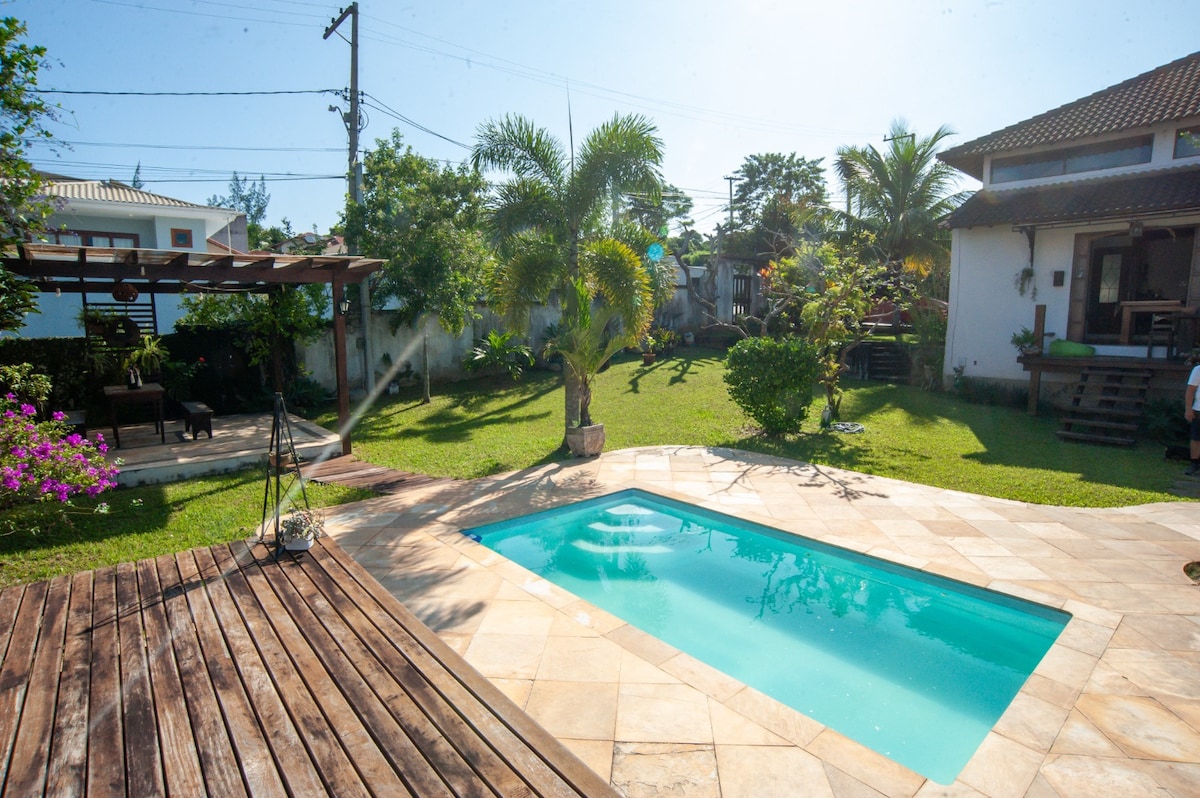 Suíte espaçosa e tranquila em casa apaixonante, cheia de paz, em ITAÚNA, SAQUAREMA/RJ, para até 2 pessoas, com campo de futebol/vôlei, piscina, churrasqueira, mesa de sinuca e mesa de ping-pong e CAFÉ DA MANHÃ. A suíte tem TV, ventilador de teto, ar condicionado e frigobar. Fica em área privilegiada a poucos metros da praia de Itaúna e da Reserva Natural de Massambaba. O lugar perfeito para um fim de semana romântico, férias, feriados e datas festivas.