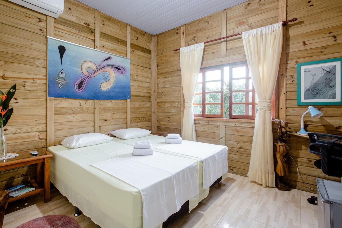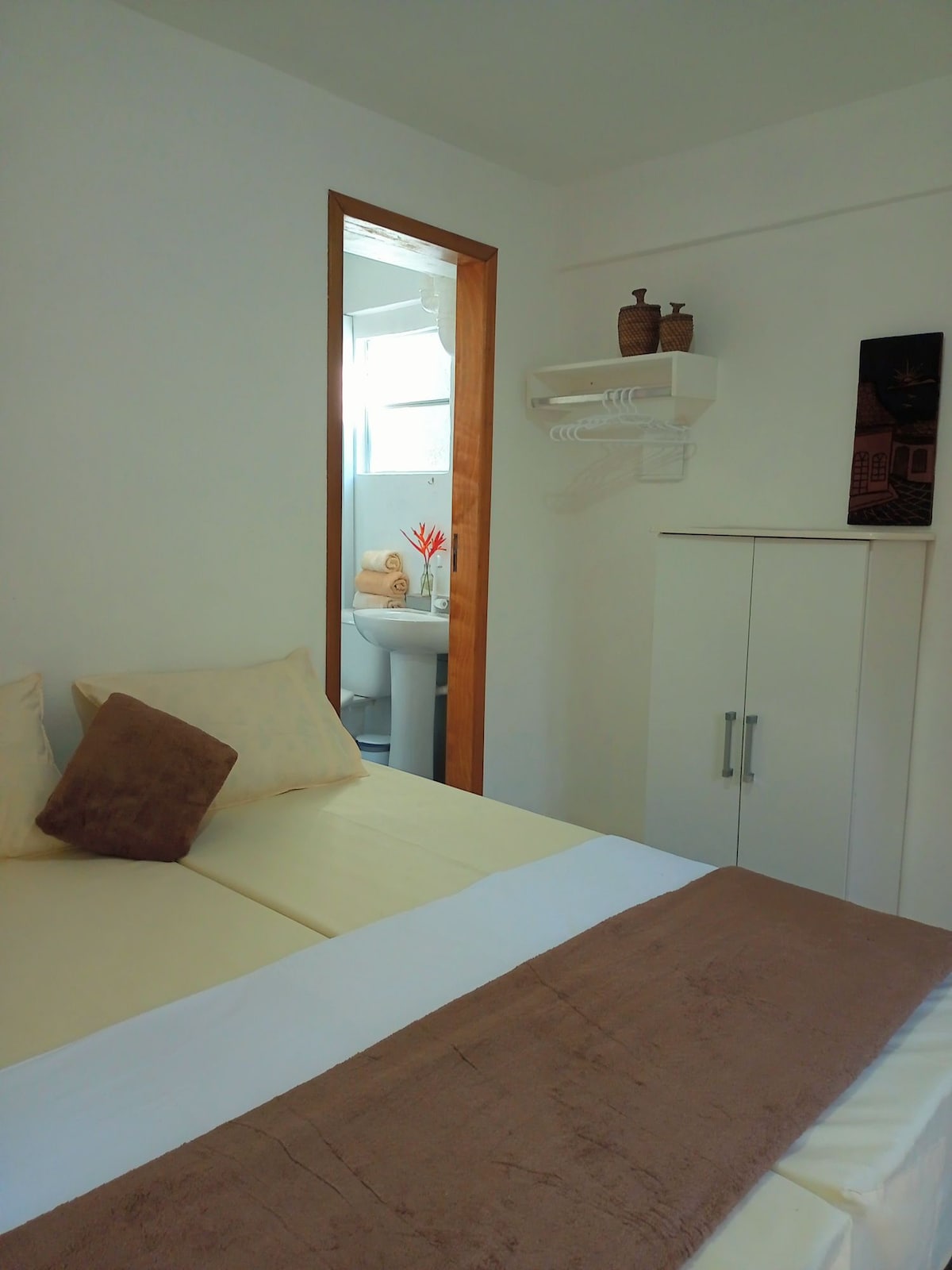 🌟 Imagine acordar com som da natureza do Morro da Cruz e o conforto de um quarto com ar-condicionado só pra você. Aqui, o tempo desacelera e a vida ganha leveza. A poucos minutos das praias mais lindas de Saquarema: 6 min de Itaúna e 9 da Vila. Seu refúgio te espera. ✨ O que te espera por aqui: ☕ Café da manhã 🏡 Suíte aconchegante com ar-condicionado 👩🏽🍳 Área gourmet compartilhada 🏊♀️ Piscina, churrasqueira e garagem 📶 Wi-Fi, TV, roupa de cama e banho ❌ Não possui frigobar no quarto