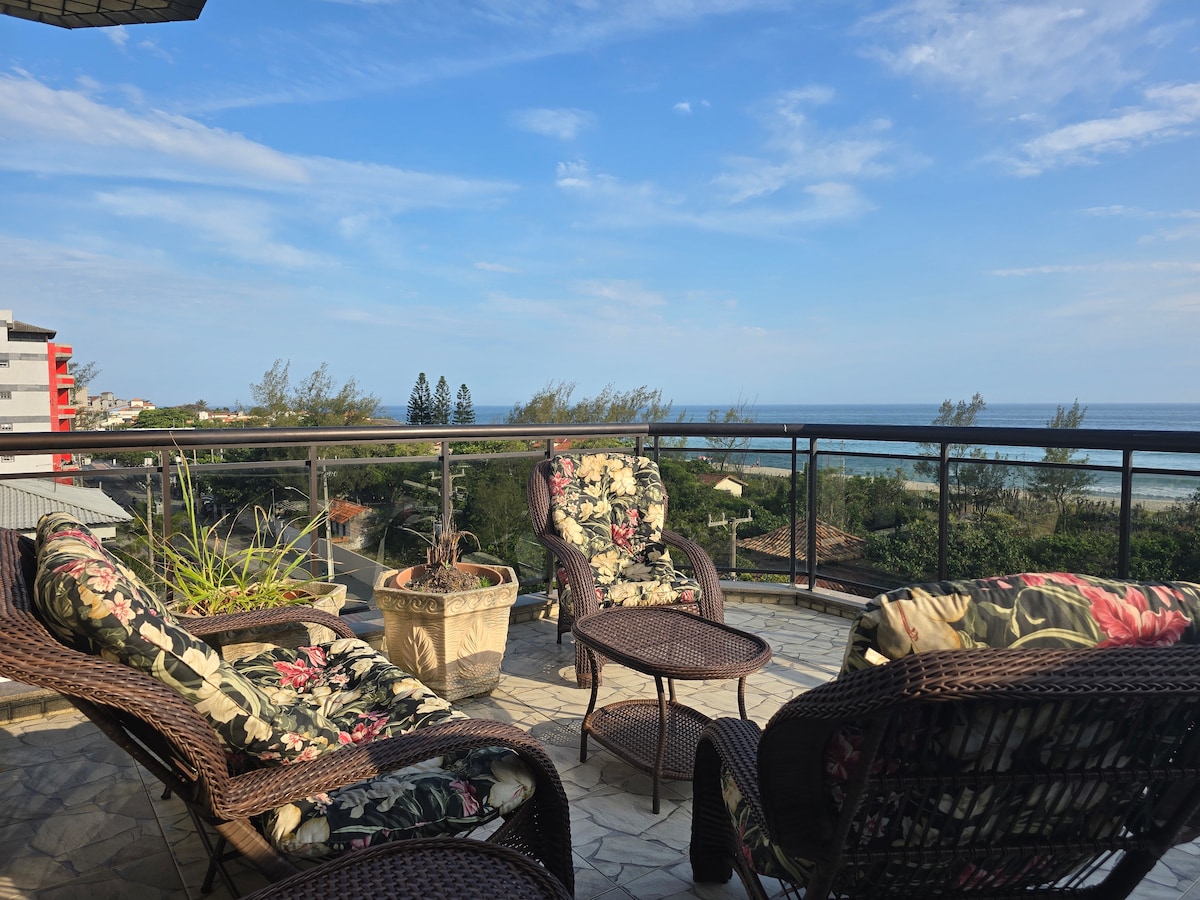 Cobertura Duplex com a melhor vista da Praia de Itaúna! Lugar aconchegante e confortável. Você vai se sentir como se estivesse em sua própria casa, literalmente em frente (30m) à praia de Itaúna que além de ser a MAIS procurada da cidade é onde os MAIORES nomes Do surf mundial pisam TODOS os anos, pela WSL. Guarde IMEDIATAMENTE o carro e vá andando para a praia! Alimentação farta com os melhores restaurantes! 5 min do centro de Saquarema, a 4 min da Rodoviária e a 6 min da Lagoa, de Carro!