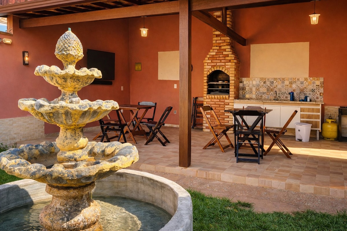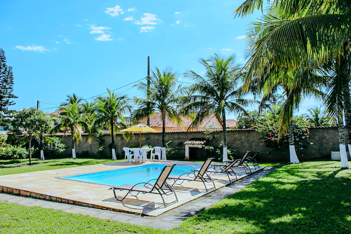 Relaxe com a família nesta acomodação tranquila, perfeita para grupos de até 8 pessoas e/ou famílias com crianças. Com piscina, parquinho, churrasqueira, trave de futebol, mesa de ping-pong e pebolim, não faltam opções de entretenimento. Seu pet também é bem-vindo. Incluímos roupas de cama e travesseiros para sua comodidade. Distâncias: Lagoa de Jacarepiá: 3,5 km Praia de Vilatur: 5,9 km Centro de Saquarema: 10,9 km Lagoa de Praia Seca: 16,8 km Praia de Itaúna: 11,4 km @aluguelsaquarema