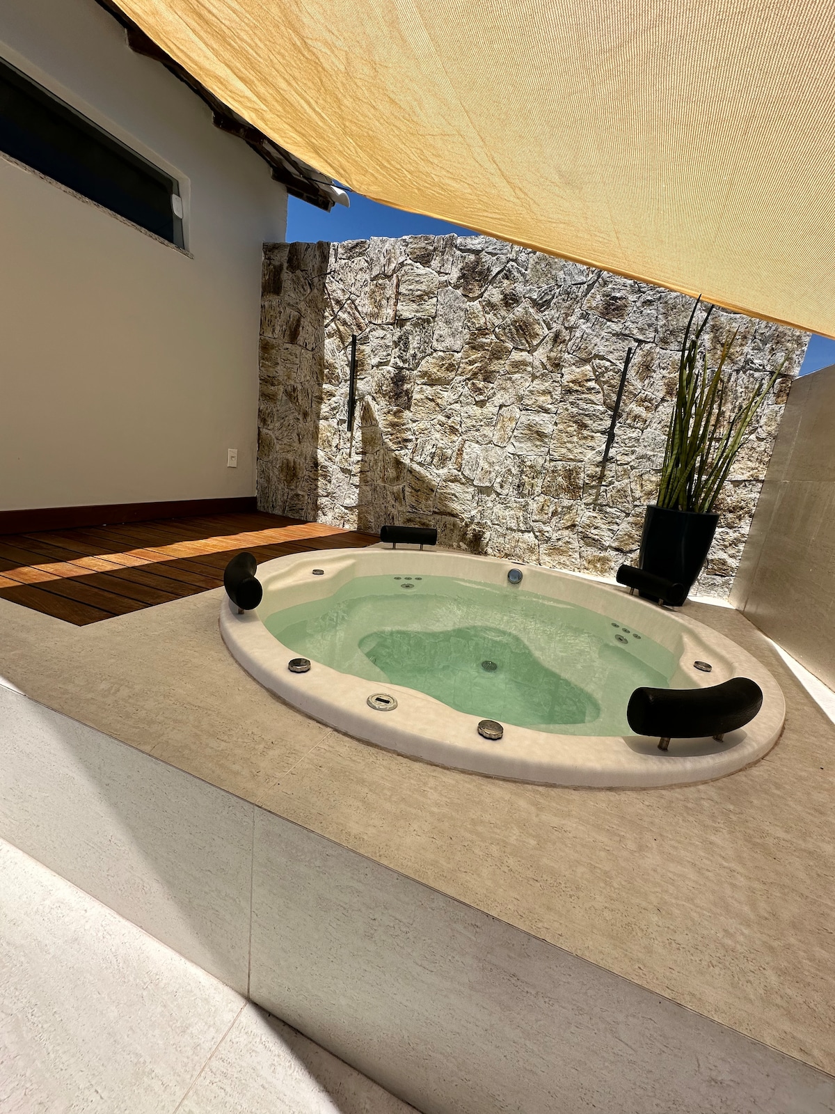 Inspirado nos melhores hotéis do mundo, esse lindo bangalô de 150m² no meio da natureza conta com piscina privativa, dois quartos com ar condicionado, TV 4K, WiFi, roupa de cama e toalhas de fios importados, cozinha, frigobar, cervejeira, cafeteira com cápsulas, espaço home-office, lareira externa, churrasqueira e banheiro com vista para o verde. Pets são muito bem vindos!
