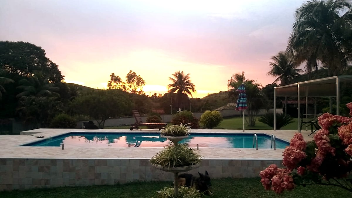 O Sítio tem toda infraestrutura necessária para seu lazer com a família e amigos para até 24 pessoas..Situado no município de Saquarema, próximo a Bacaxá, e apenas a 200 da Rodovia Amaral Peixoto, possui piscina com churrasqueira ao lado e casa externa para uso do toilete e duchas para banho. ALUGADO EXCLUSIVAMENTE A UM GRUPO POR VEZ. Temos mais duas casas, caso não tenha a data que tem interesse.