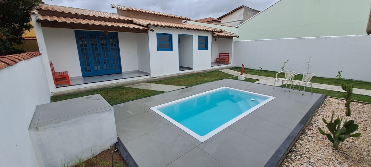 Leve toda a família a este ótimo lugar com muito espaço para se divertir. Casa novíssima com excelente acabamento a exatos 50 mts da praia . uma área gourmet excelente com piscina churrasqueira chuveirão totalmente privativo . Wi-Fi todos os utensílios para vc se sentir em casa . Um bairro tranquilo com total segurança. Farmácias mercados restaurante e lanchonete todos próximos da casa . Local apaixonante com uma praia linda e lagoas próximas .. No coração da região dos lagos