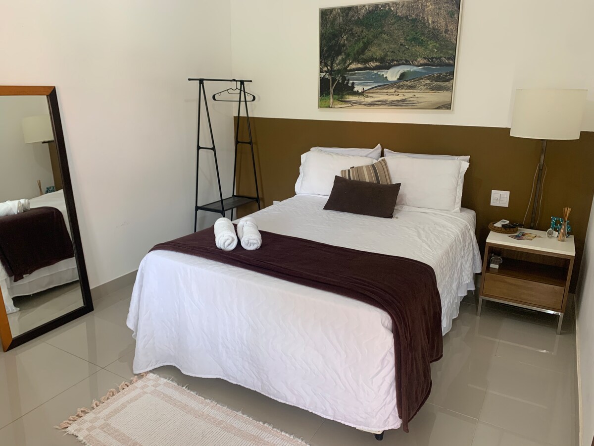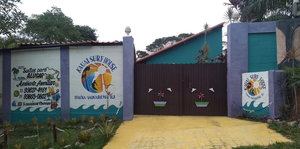 Linda suíte localizado em Itaúna Saquarema. - 250 metros da rodoviária; - 600 mts para praia de Itaúna (Mercadinho de Itaúna) - 1,6 km para o point de Itaúna (Campeonato WSL) - 1,0 km para a praia da Barrinha - 1,6 km para a praia da Vila - 1,5 km para a Paróquia Nossa Senhora de Nazareth Perto de excelentes bares e restaurantes, para você desfrutar o máximo de nossa cidade. OBS.: Na suíte são permitidos no máximo dois adultos e se o casal tiver filho, temos uma cama extra para criança.