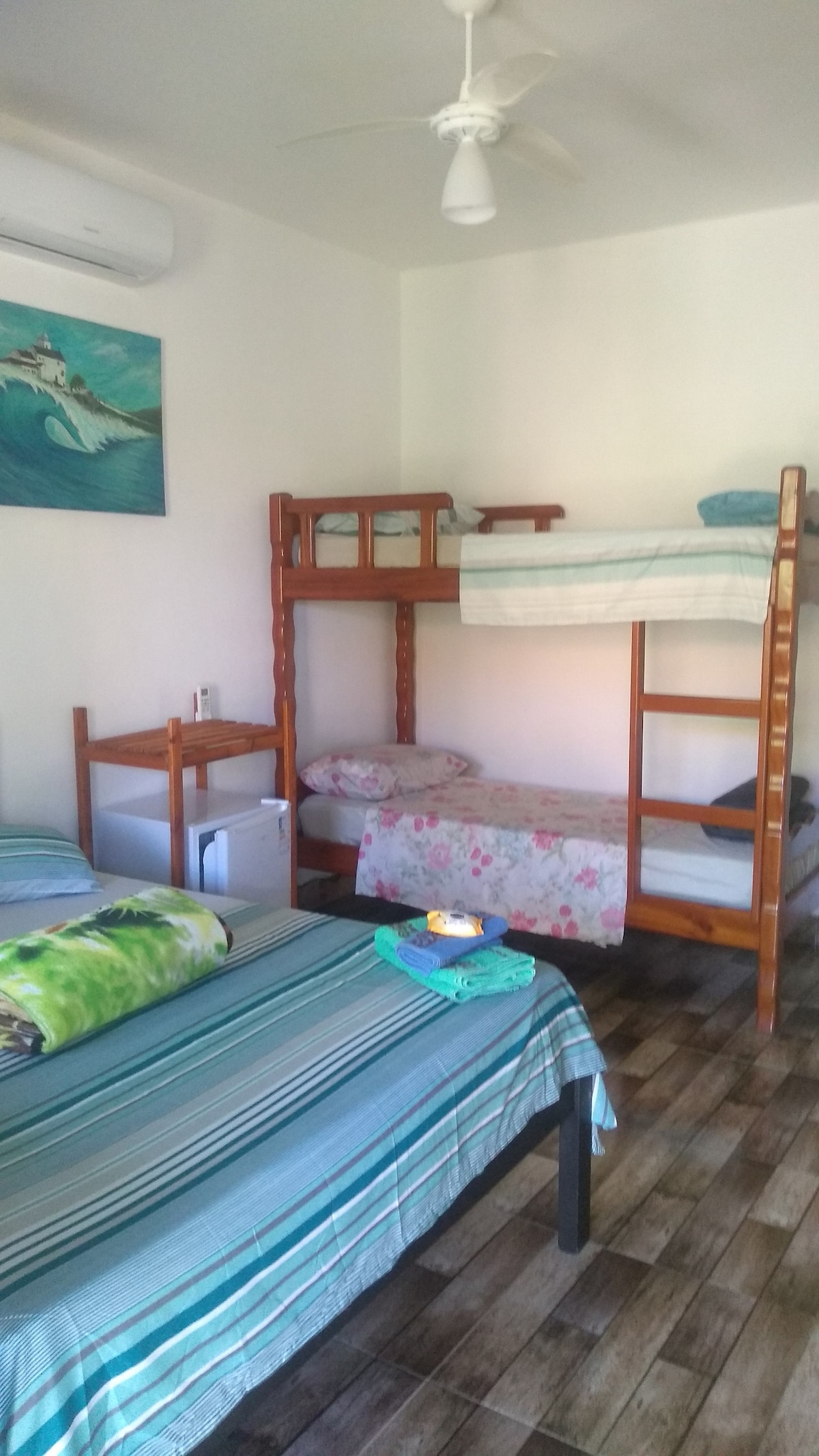CHECK IN e CHECKOUT *** LIVRE DE HORÁRIOS *** SUÍTE TOTALMENTE INDEPENDENTE e REFRIGERADA para casal e filho. Ideal para Casal; Dá para receber+ uma criança até 12 anos (coloco mais uma cama de solteiro) R$ 40,00 Banheiro exclusivo; 100 metros da praia de Itaúna; Na Capital Nacional do Surf; Estacionamento dentro de casa.