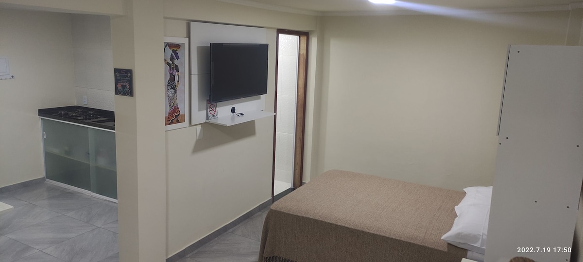Duplex (temos 4 unidades) Primeiro andar com sala e cozinha completa com varanda. Segundo andar suíte com cama de casal e beliche. Ar condicionado split. Vista livre. Aceita pet. Wi-fi gratuito. Comércio perto. 250m da praia (3 min a pé). 15min (a pé) da pedra de Itaúna e do Point (wsl)