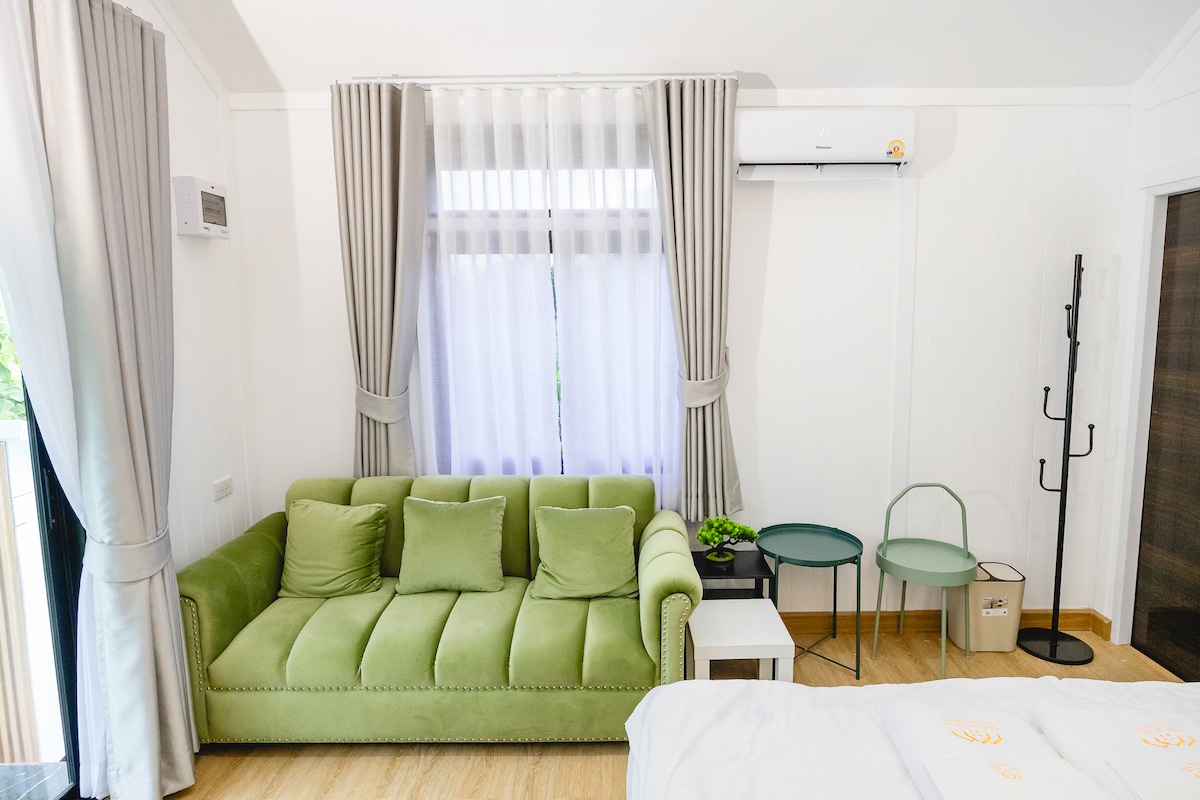 ✨ Spacious room with sofa area ✨ 5-star hotel grade mattress ✨ Air-conditioned comfort ✨ Smart TV (Netflix & YouTube) + Free Wi-Fi ✨ Private garden with mountain view, European castle style ✨ Close to restaurants and attractions and get discounts 3-10% off ✨ 10-20% off activities ( free pick up and drop off for Atv and activities) Free pick up and drop-off from bus station in Nakhon nayok