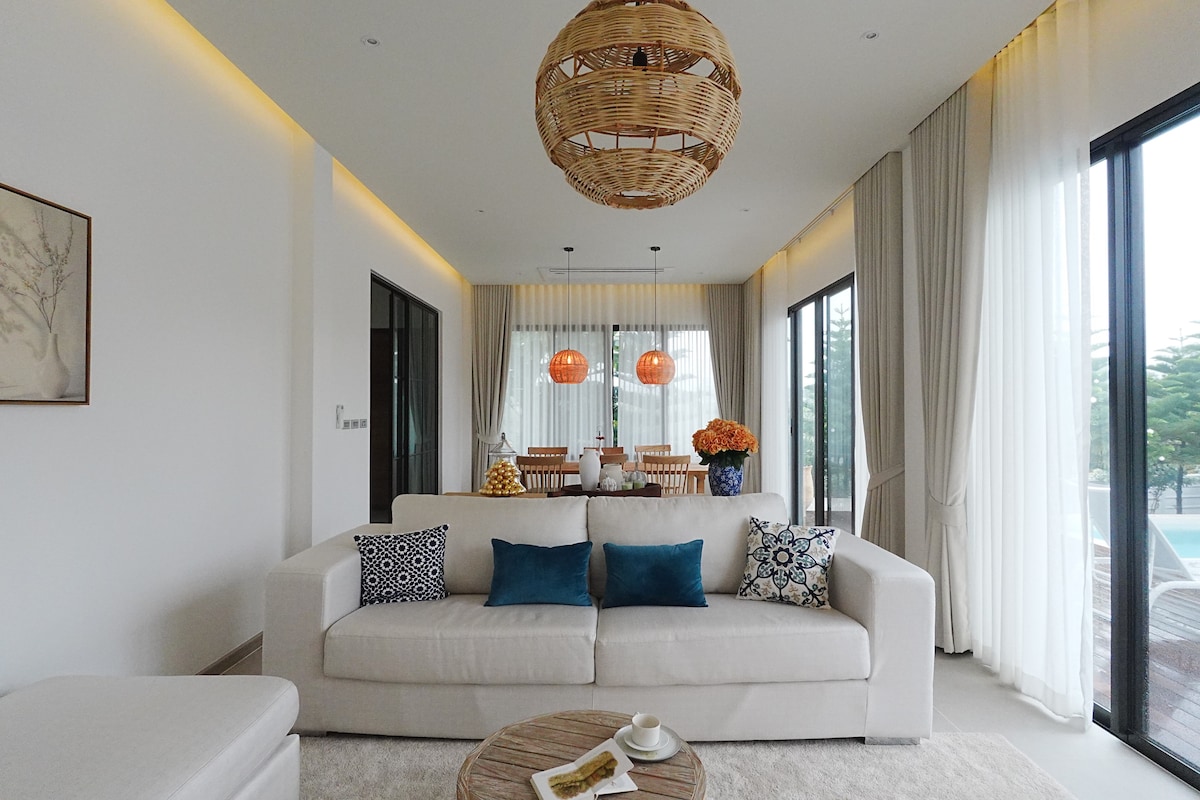 Stunning Villa in Khaoyai 📍Located on Hillside with Mountain-View surrounded by Clear Sky, Relaxing Nature and Fresh Air ☀️ Enjoy Wonderful Sunset and Sunrise just a step from Room Perfect Villa size26sq.m. makes you feel like Home 🏠 - Bedroom with queen size 🛌 - Large Window and Adjustable Sofa - Dining area ☕️Close to Popular cafes, Restaurants and Tourist Attractions Accessible to Makro, BigC, Tesco, 7-11, or Enjoy Delivery Food at your Doorstep(Order via Grab/ Line Man/ Food Panda🍔