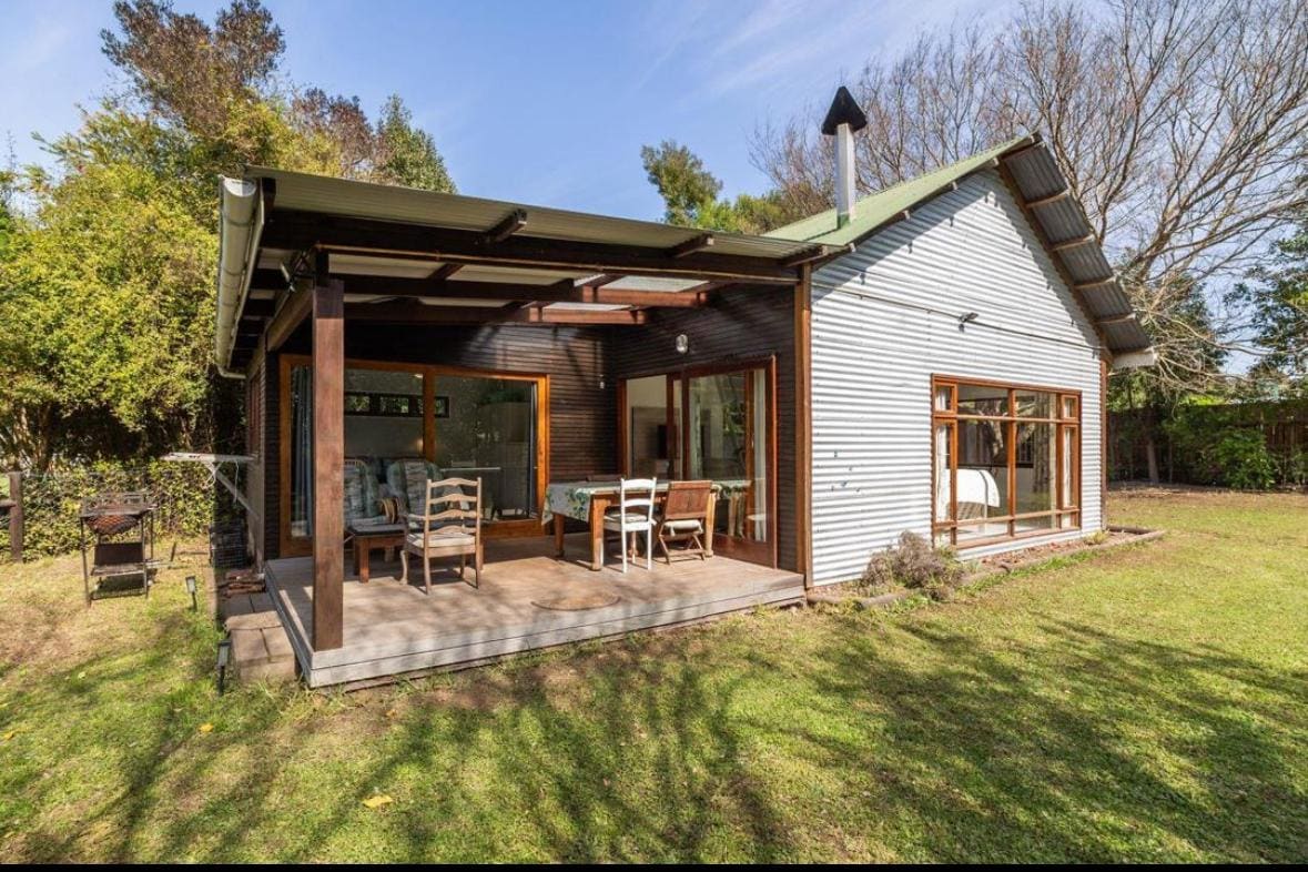 A delightful and rare find, this original wooden cabin is within a popular secure estate 100m walk from the beach! The simple life awaits! Sleeps three happily. Two additional floor mattresses are in the loft (accessed by ladder) An inverter ensures your lights and internet won't go out loadshedding, new kitchen, new bathroom , quality bedding, superb mattress, toys, trampoline and swings, it's all about priorities, and here the priority is beach living and restful nights. Small is beautiful!