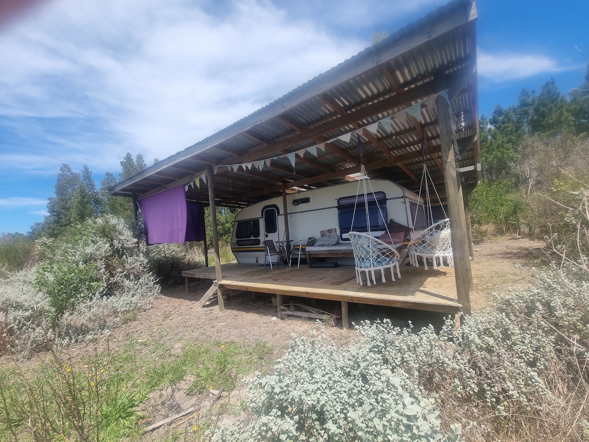 Simple comfortable and affordable self catering caravan accommodation that sleeps 2 guests, 2 single beds or a double bed optional. please specify when you make your booking. additional beds are available to sleep extra people at a small additional cost Situated at The Family Tree, the van is nestled in the fynbos and offers a peaceful space . The perfect way for have an affordable base and to explore the garden route and her surprises. Dinner and breakfast options are available on request