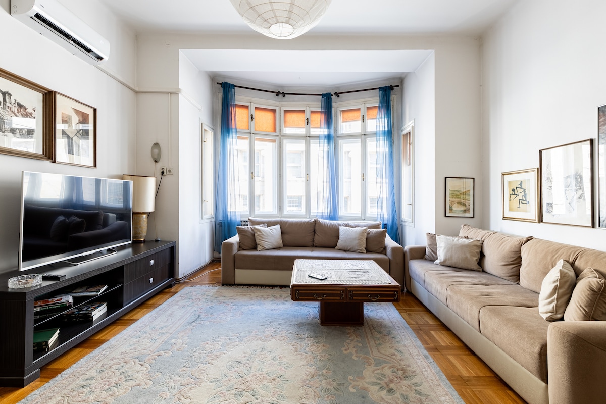 Uživajte u elegantnom iskustvu koje nudi ovaj smještaj za 2 + 2 osobe a koji se nalazi u strogom centru Sarajeva, 100 m od Narodnog pozorišta i festivalskog trga, Baščaršija 10 minuta lagane šetnje, Vječna vatra 210 m, Katedrala Presvetog Srca Isusova 280 m, Saborna Crkva Rođenja Presvete Bogorodice 140 m, Husrev-begova džamija 550 m itd. Za one koji šetnjom žele obići grad idealan izbor.