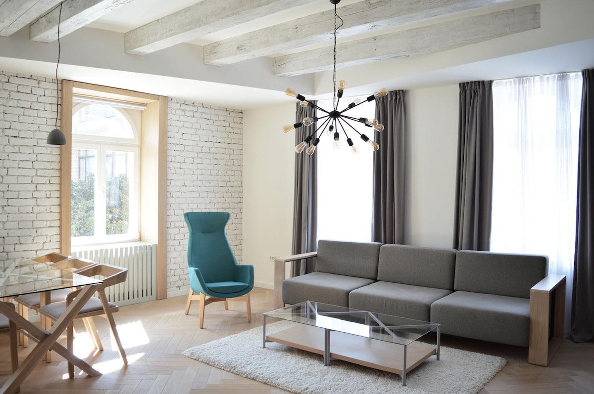 Newly renovated loft in central Sarajevo with bold design, wooden beams, exposed brick, and traditional Bosnian touches. The space blends industrial charm with comfort, featuring hanged exposed lights, vibrant art, and a cosy lounge with fireplace and projector. A highlight is the private 15m² rooftop terrace with unobstructed panoramic city views. Fully equipped kitchen, spa-style bath, and fast Wi-Fi complete this stylish urban retreat.