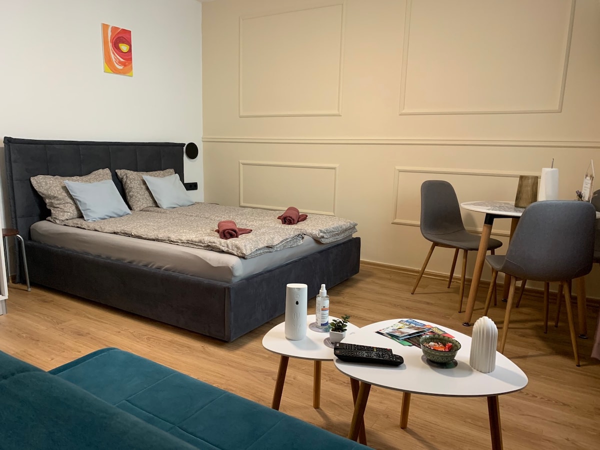This unique and stylish space built in Austro-Hungarian period is recently fully renovated. It is truly a Sarajevo gem located in the city center, walking distance from restaurants, malls, tram station and nightlife. It is perfectly suited if you are here to enjoy the city, and its cozy warm vibe makes you feel fast at home. Serve your own coffee and breakfast in bed and enjoy a glass of wine at the patio in the afternoon. Cant wait to welcome you!