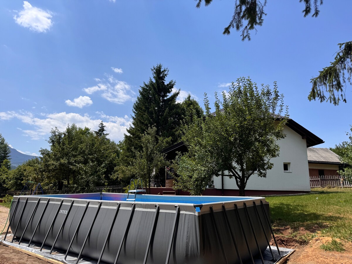 Well-lighted, spacious house of a 80 m2 consists of large living room, kitchen and bathroom on the ground floor, 2 bedrooms and a gallery on the first floor. The road to the house is newly asphalted. The whole property, including a huge yard of a 2000m2 is fenced, to provide complete privacy to our guests. From the living room there is an exit to a spacious terrace under which is a swimming pool of a 32 m2. Next to the swimming pool there is an additional unit completely equipped for a barbecue.