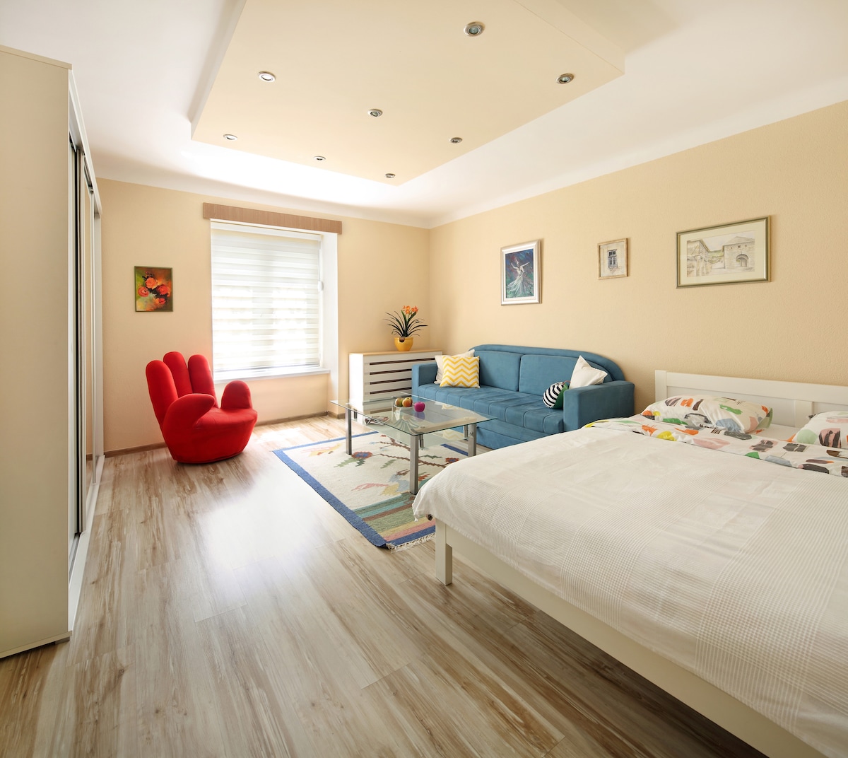 Step into an artistic apartment where art and relaxation meet. It features an infrared sauna with soothing lighting, calming music, and artistic details. A fully equipped kitchen, a large smart LG TV, and air conditioning ensure comfort. Located 6 km from the city center and 2 km from the airport, it’s surrounded by nature, a lake, and charming restaurants. The entrance is self-service with a code, and you can check in at any time of the day or night. :) Enjoy your artistic escape!