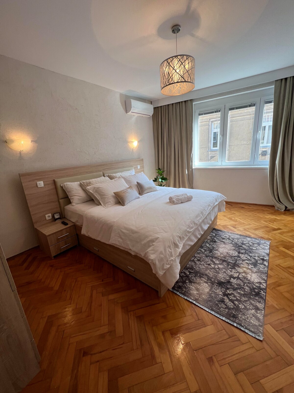 Welcome to your spacious retreat in the heart of Sarajevo! Enjoy stunning views of the iconic City Hall, just a 5-minute walk from Sebilj and the historic center. 4 bedrooms, 2 bathrooms, and a fully equipped kitchen make it perfect for families . Stay comfortable with air conditioning, and unwind on the balcony while taking in the city's charm. 2 parking spots are available. Stay active in our small gym. Experience Sarajevo's top attractions and vibrant culture from our prime location.