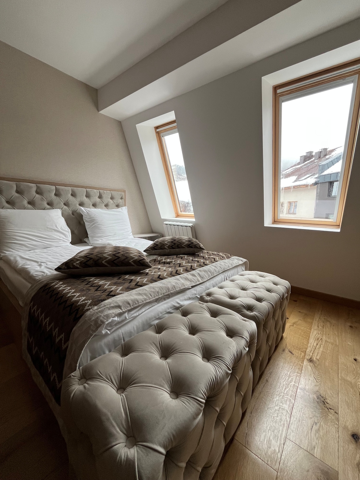 The Cosy Brick – Elegance & Warmth in Sarajevo Welcome to The Cosy Brick, a stylish 48m² apartment blending industrial charm with natural warmth. Featuring an exposed brick wall, a mix of wood and black elements, and cosy furnishings, it offers both comfort and elegance. Enjoy a spacious living area, fully equipped kitchen, and a serene bedroom. Perfect for business or leisure, with free parking only 200m away, this modern retreat is your ideal stay in Sarajevo!