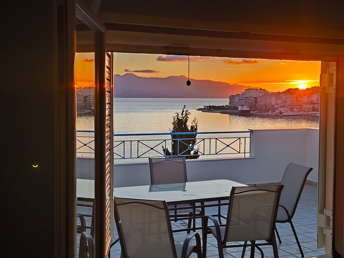 Αυτός ο ξεχωριστός χώρος 110 τ.μ. είναι σε κεντρικό σημείο της πόλης. κοντά στο λιμάνι με πανοραμική θέα της θάλασσας και της πόλης. Διαθέτει WiFi, δωρεάν ιδιωτικό πάρκινγκ (για ένα αυτοκίνητο) και μπορεί να φιλοξενήσει έως 6 άτομα, διαθέτει δύο διπλά κρεβάτια και έναν μεγάλο διπλό καναπέ κρεβάτι. Έχει δύο τουαλέτες (ένα μεγάλο με ντουζιέρα κ ένα μικρότερο wc) έχει μεγάλη κουζίνα πλήρως εξοπλισμένη και τρία μπαλκόνια (δύο μικρά και ένα μεγάλο περιμετρικά στην πρόσοψη του διαμερίσματος)